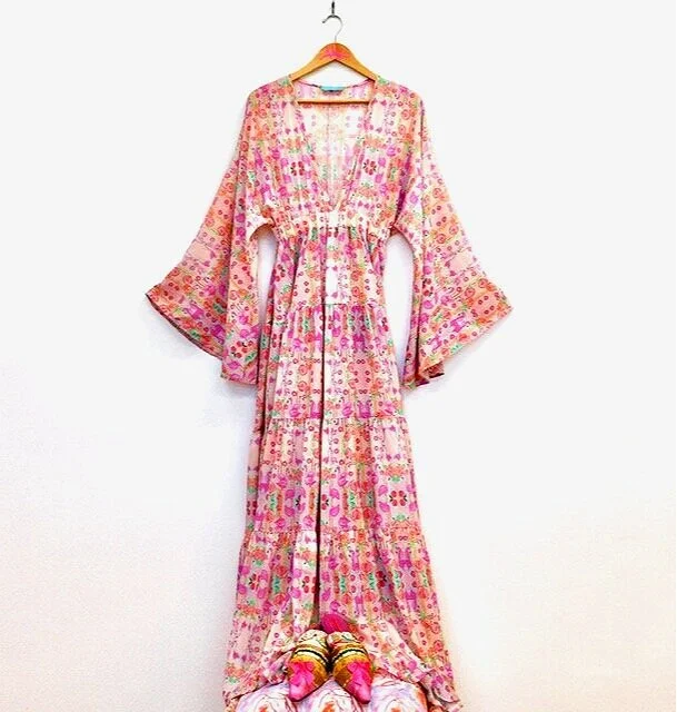 The second tier is a medium run, “one-of-a-kind” production. I create a pattern and a size run using different hand-printed fabrics for each dress. This is a great option for those that want to have a fresh wearable art piece.